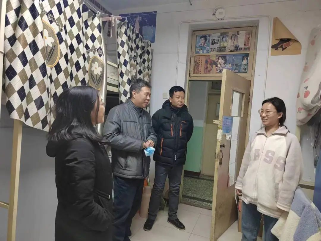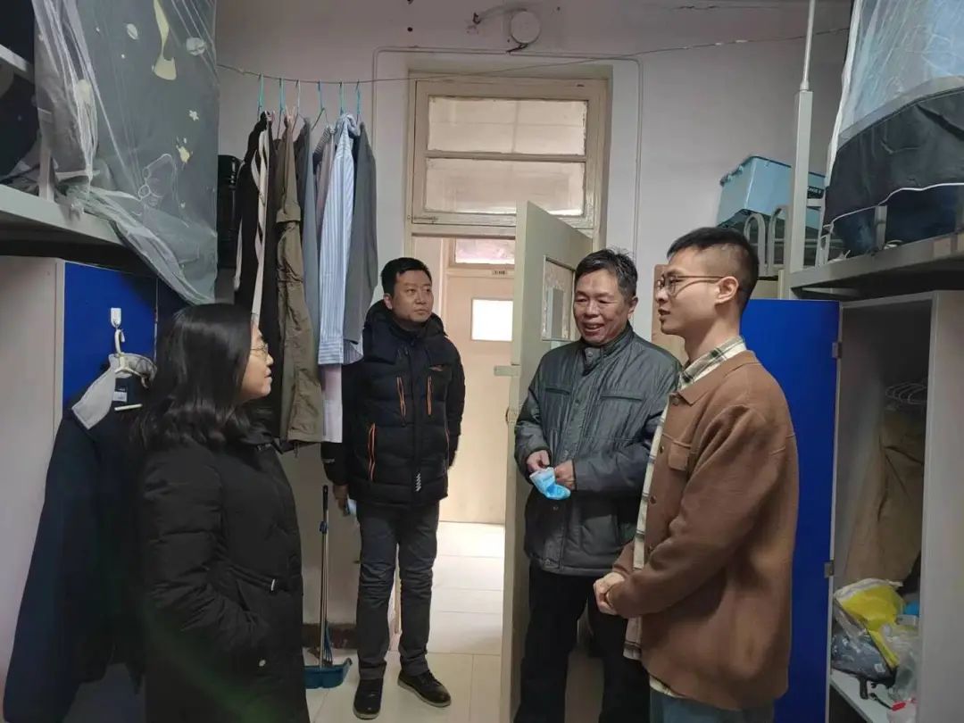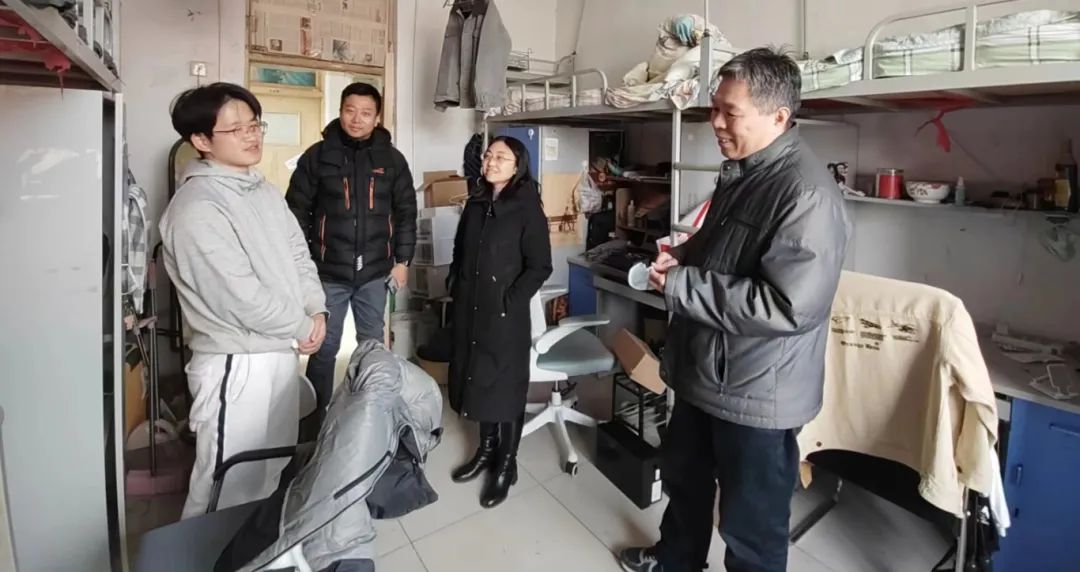 党委书记郭芃、党委副书记王瑾,团委副书记李鹏深入学生宿舍走访慰问,传递学校关怀,了解同学们在假期的各项情况,倾听学生在新学期的期待与需求,并从日常生活、学习状态、职业规划等多方面深入了解同学们的学习生活状况,送上新学期的美好祝愿。
