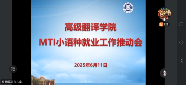 近日,学院召开2025届MTI多语种就业工作推动会,会议采取线上线下相结合的方式,学院班子成员,MTI多语种负责人、2025届毕业生分片包干老师以及毕业班辅导员参会。